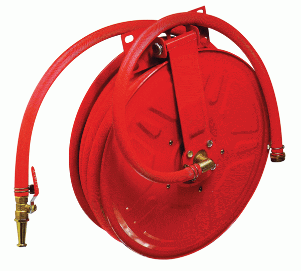 消防軟管卷盤由閥門、輸入管路、輪輻、支承架、搖臂、軟管及噴槍等部件組成,以水作滅火劑,一般安裝在室內消火栓箱內,是新型的室內固定消防裝置,適用于撲救A類碳水化合物如紙質、木質和棉麻織物等物質初起的火災。