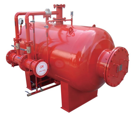 混合存儲罐由壓力罐,膠囊,比例混合器,安全閥,止回閥,壓力表,單向閥及管道組成。由泵供給壓力水,將泡沫液按一定比例與水混合成泡沫混合液的裝置,由于膠囊將泡沫液與水隔開,泡沫液一次沒用完,下次可以繼續使用,而且混合精度穩定,可靠。