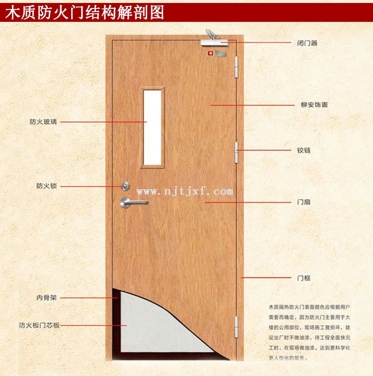 2、木質乙級防火門,產品耐火極限為不低于1.0小時;